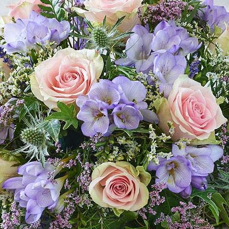 A pretty and popular design, this posy features roses and fragrant freesias in stunning pastel tones.