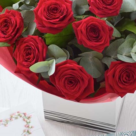 Want to woo someone with flowers? This is how you do it. Our artisan florists spiral long-stemmed red roses in the hand to create this magnificent bunch. It's then beautifully gift-wrapped and hand-delivered for a truly magical doorstep moment.